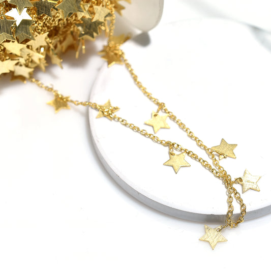 Twinkling Star Dangle Rosary Chain – Gold Plated Charm Linking Chain for DIY Projects