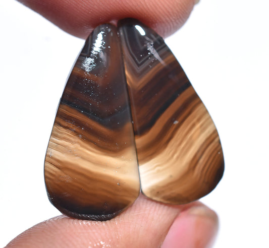 Unique Banded Agate Gemstone Earrings Pair - Pear Shape Agate Matching Stones