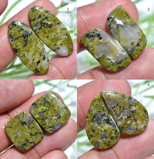 Unakite Gemstone Pair - Mixed Shape Cabochon Pair, Green Matched Stones