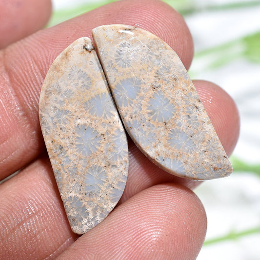 Unique Fossil Coral Gemstones – Matched Teardrop Cabochon Set(10x27x2mm,/22ct)