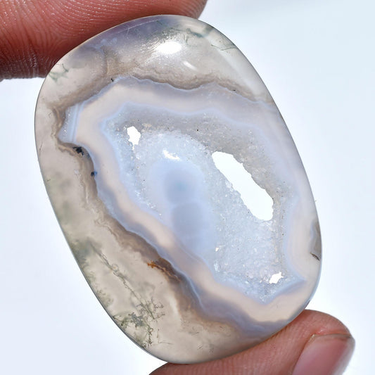 Unique Green Moss Agate Cabochon – Window Moss Agate Stone, Druzy Agate Gem
