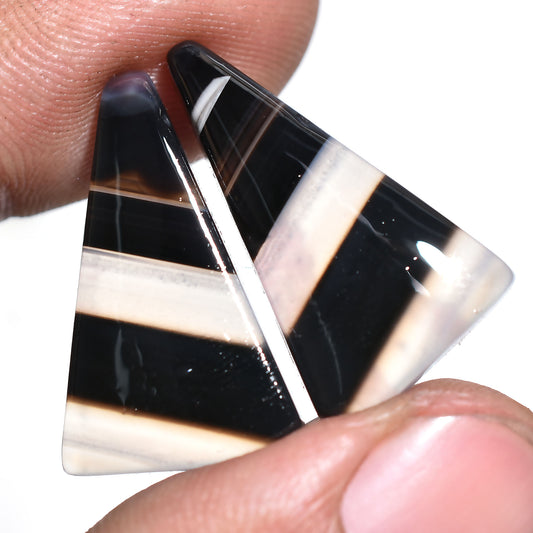 Unique Striped Black Banded Agate Gemstone Pair – Perfect for Jewelry Designs