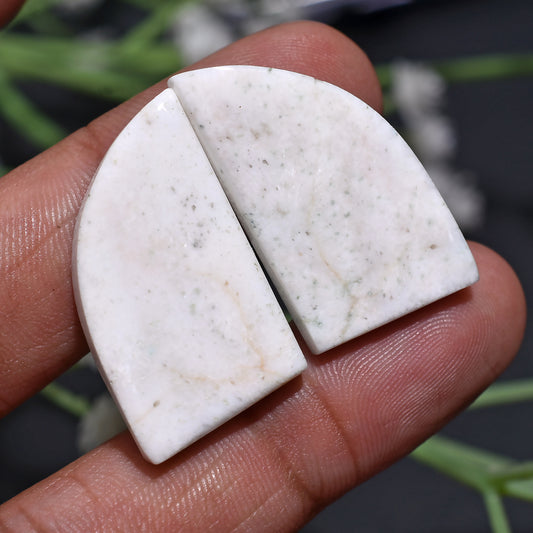 Unique White Scolecite Pair – Fancy Shaped Matched Gemstone For Unique Jewelry