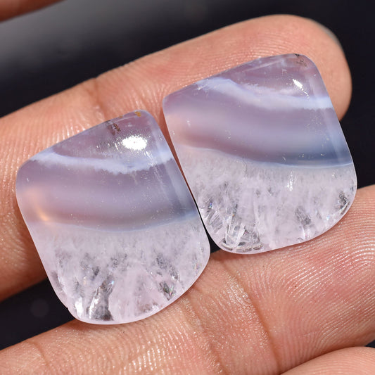 Unique Solar Quartz Smooth Pair, Sky Quartz Agate for Earrings