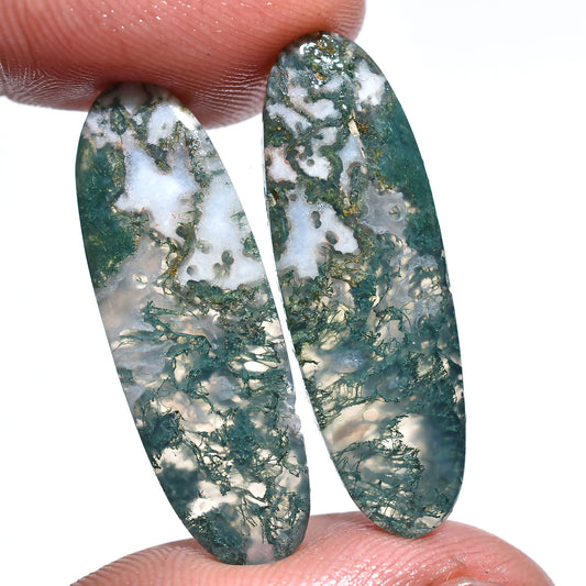 Beautiful Moss Agate Gemstone Pair for Earrings – Wholesale Loose Cabochons for Custom Jewelry