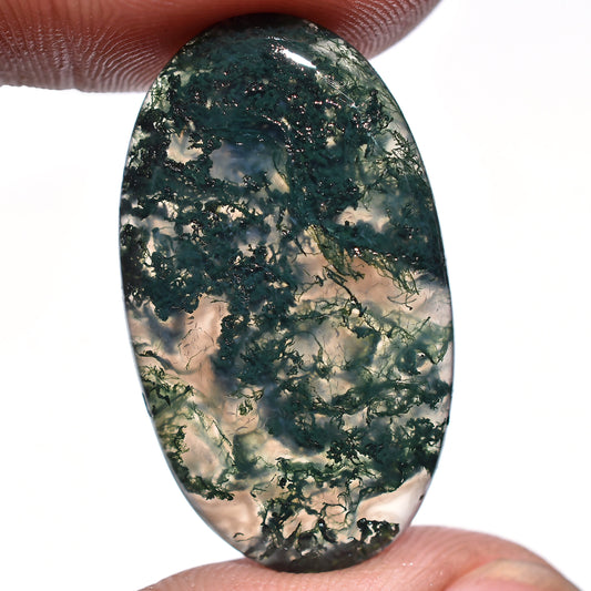 Beautiful Oval Moss Agate Loose Gemstone - Natural Green Moss Agate Cabochon