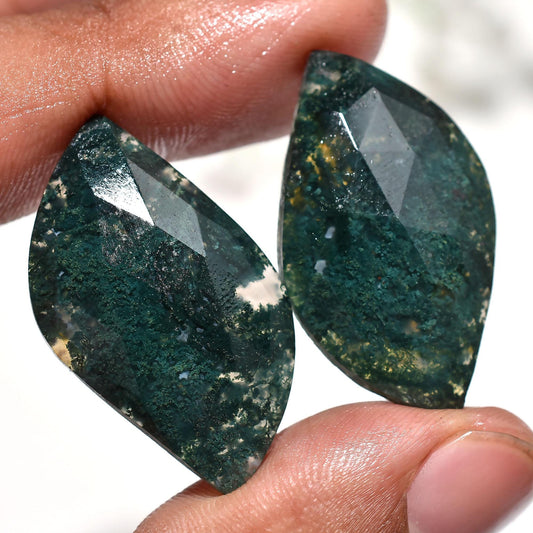Beautiful Moss Agate Faceted Pair – Fancy Shape Green Crytsal Stone