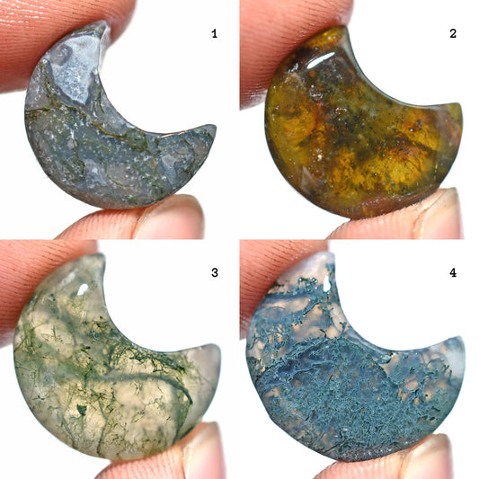 Beautiful Moss Agate Moon Cabs – Green Crescent Gemstones for Pendants & Jewelry