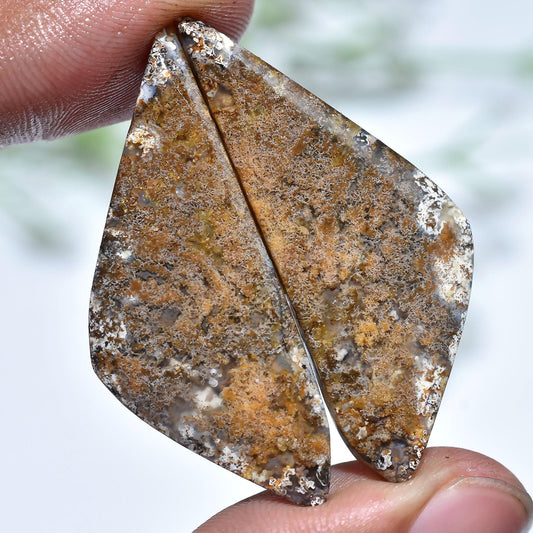 Beautiful Moss Agate Pair Gems - Fancy Shaped Matched Agate Cabochons for Jewelry Making