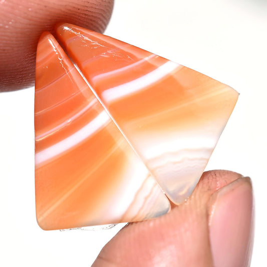 Beautiful Orange Banded Agate Earrings Pair - Fancy Shape Cabochon Gemstones