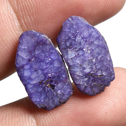 Vibrant Blue Solar Quartz Druzy Pair – Sparkling Jewelry Gemstones (7x16x5mm,/7ct)