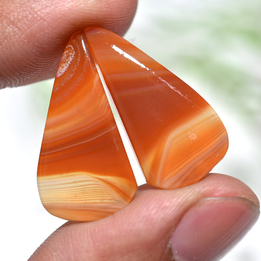Vibrant Orange Banded Agate Matched Earrings Pair – Natural Gemstones For Jewelry