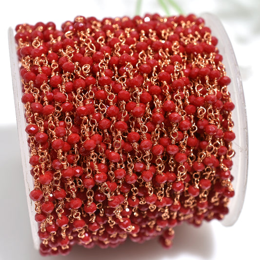 Vibrant Red Onyx Hydro Rosary Chain Rose Gold Plated Beaded Gemstone Connectors for Crafting