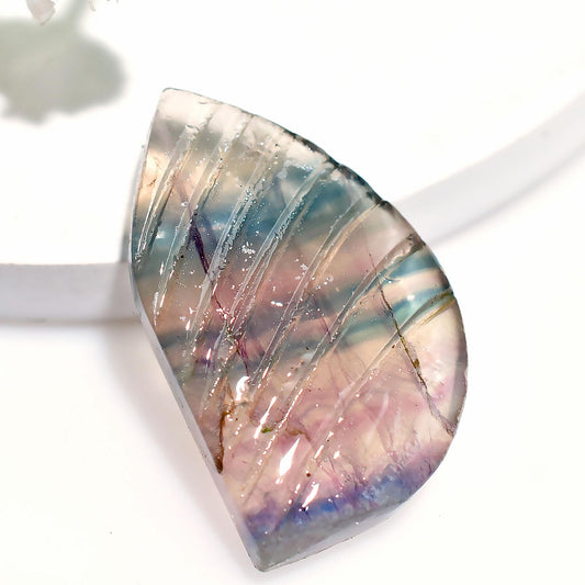 Vibrant Fluorite Gemstone Carving - Unique Handcrafted Jewelry Piece, Colorful Gemstone.