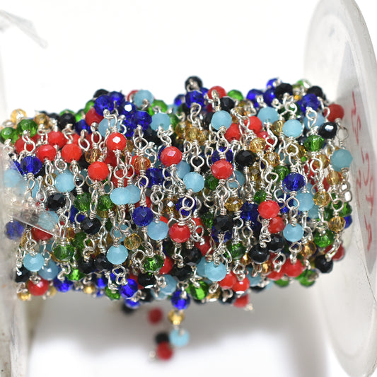Vibrant Multi Disco Hydro Gemstone Rosary – Wholesale Silver Plated Jewelry Link Chain For Crafting