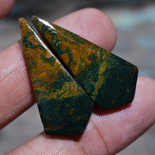 Vitality Bloodstone Matched Gemstone Pair – Bold Healing Stones for Artisan Jewelry
