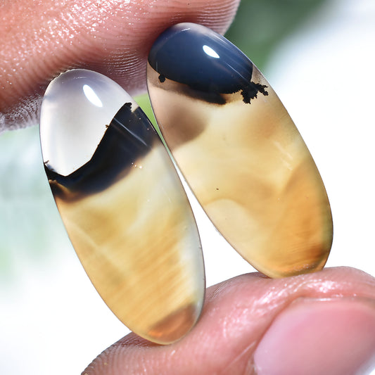 White & Black Dendrite Opal Pair – Matching Oval Cabochons for Wholesale Supply