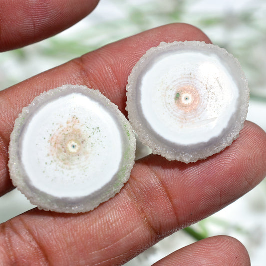 White Cosmic Solar Quartz Gemstone Pair – Raw Slice Geodes for Spiritual Jewelry Making