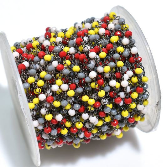 Vibrant Rosary Chain with Black Plating - Wholesale Multi Color Gemstone Beads Bulk Lot
