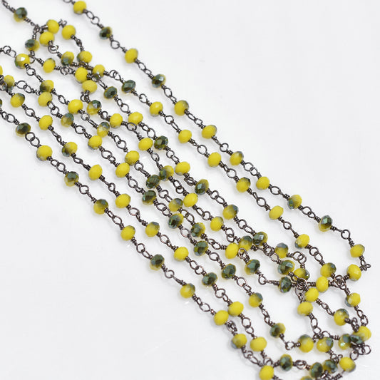 Vibrant Yellow Jade Coated Gemstone Beads Rosary – Gunmetal Link Chain for Jewelry Design