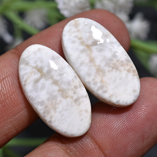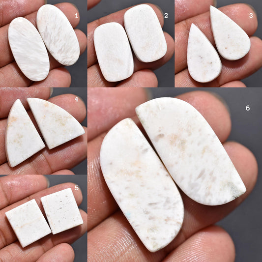 White Scolecite Stone Pair – Wholesale Matched Pair For Custom Earrings