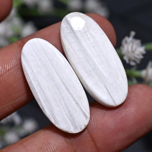 White Scolecite Oval Gemstone Pair – Premium Loose Stones For Designers