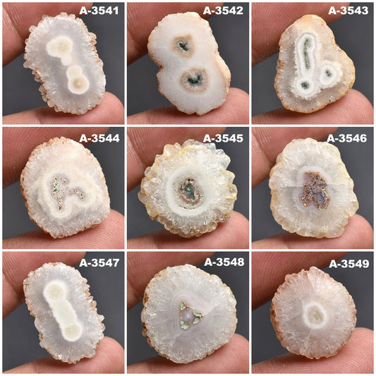 White Window Druzy Cabochons - Natural Solar Quartz Slice Crystal for Jewelry Design