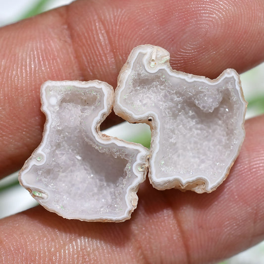 White Solar Quartz Druzy Pair - Natural Window Druzy for Creative Earring Making