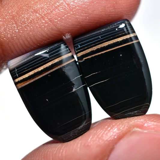 Wholesale Black Banded Agate Fancy Gemstone Pair for Jewelry Making (11x17x2mm,/13ct)