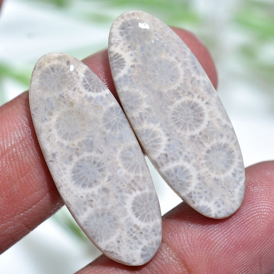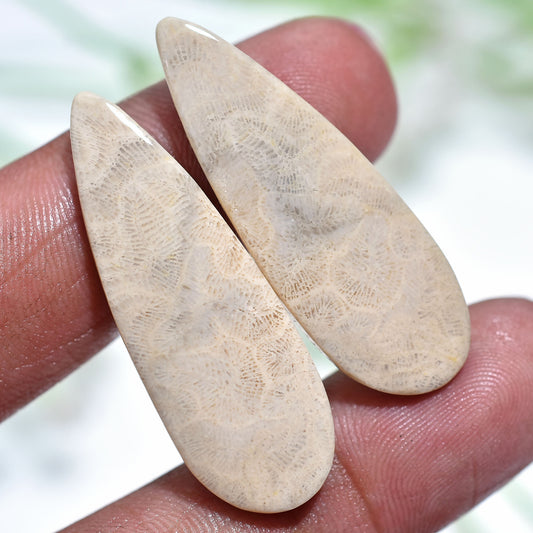 Wholesale Fossil Coral Cabochons Pair - Natural Floral Patterned Gemstone Set for Earrings Making (11x32x3mm,/30ct)