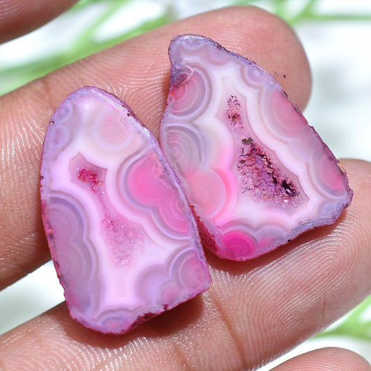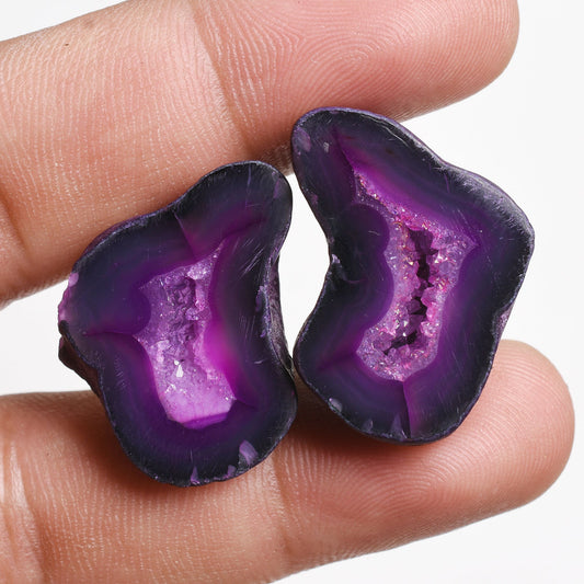Window Solar Quartz Pair for Earrings - Pink Geode Slice Stalactite Gemstone