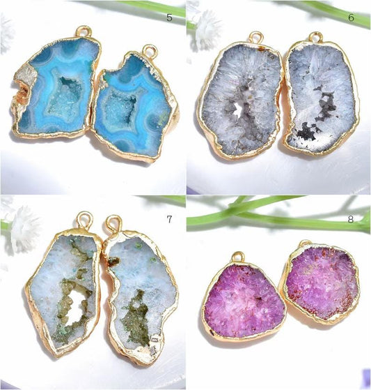 Window Druzy Pairs – Fancy Shape Solar Quartz Gemstone Slices