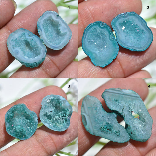 Beautiful Sky Blue Druzy Agate Geode Pair – Matching Earrings Set & Healing Stone