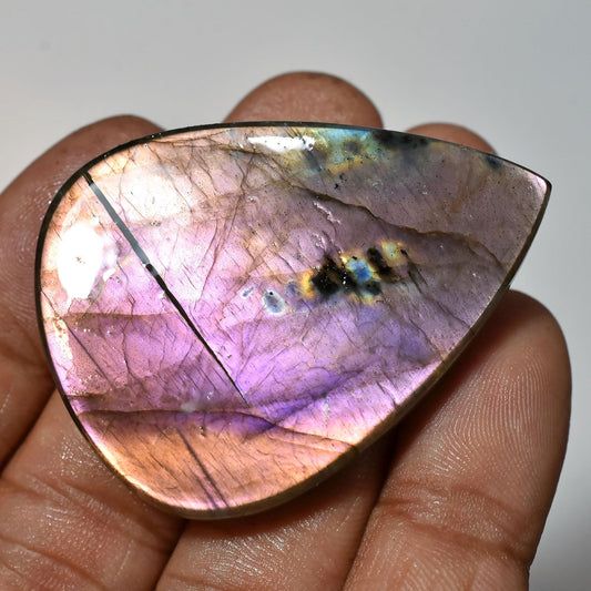 Beautiful Purple Fire Labradorite Cabochon – Pear Shaped Smooth Polished Flat Back Stone