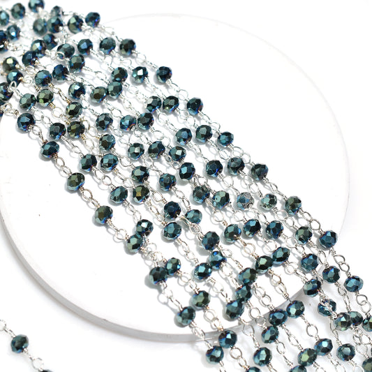 Beautiful Pyrite Hydro Rosary Chain with Silver Coating - Silver Plating Gemstone Chain Lot
