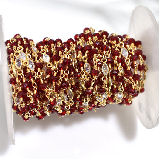 Zircon & Garnet Rosary – Radiant Gold Wire Wrapped Prayer Necklace for Mindful Living