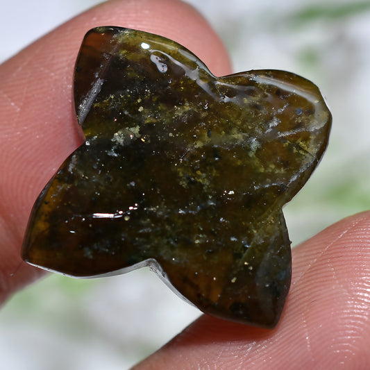 Beautiful Vessonite Flower Carving – Exquisite Green Gemstone for Crafting(17x20x3mm,/27ct)