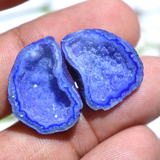 Beautiful Window Druzy Pair Cabochon - Small Dyed Solar Quartz Gemstone for Earrings