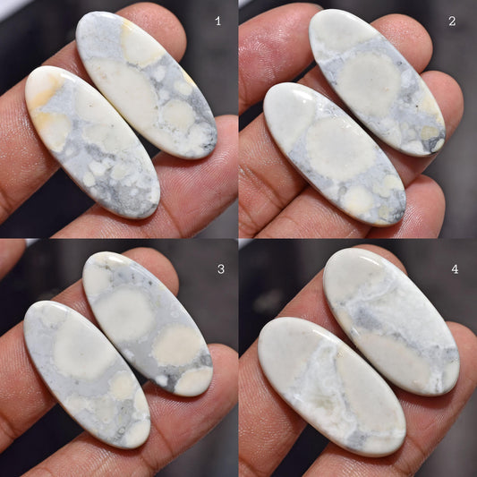 Beautiful White Mookaite Jasper Pair - Oval Shaped Smooth Flat Back Gemstones for Earrings