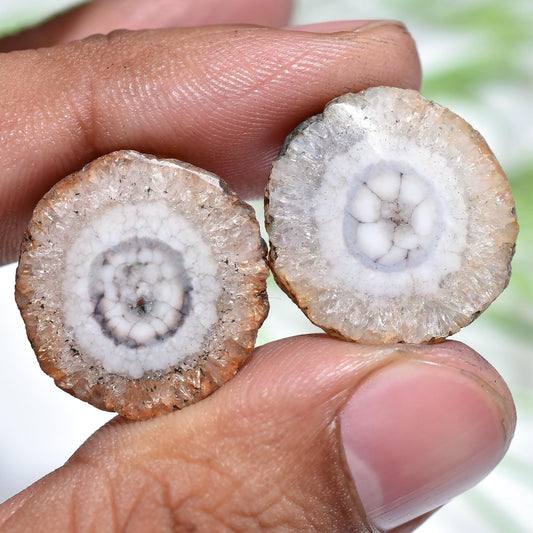 Beautiful Solar Quartz Pair Cabochon – Round Geode Stalactite Gemstones