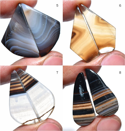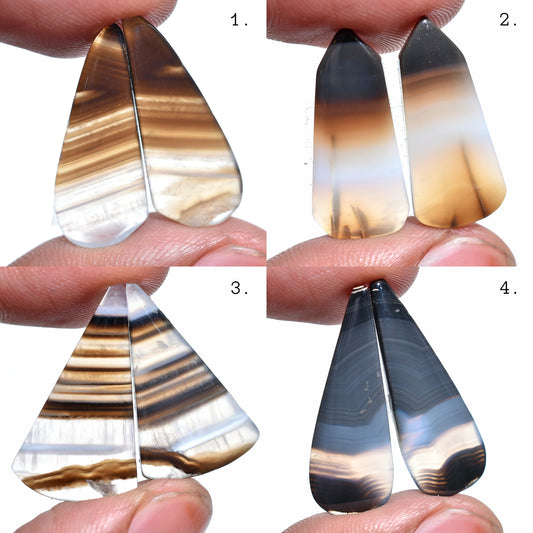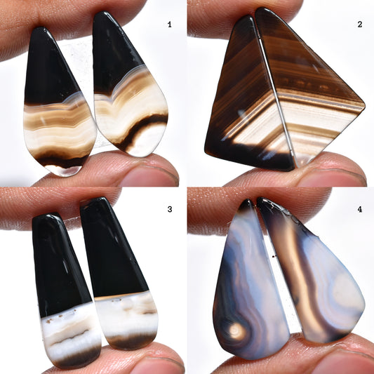 Black Banded Agate Fancy Shape Pair – Flat Back, Polished Gemstones for Jewelry Crafting