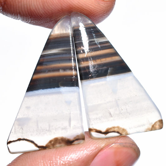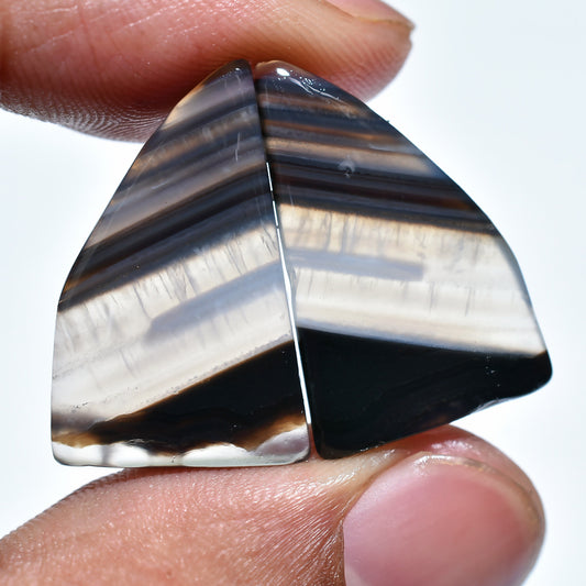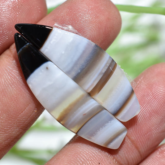 Black Banded Agate Pair Cabochon – Fancy Shape Hand Polished Matching Pair