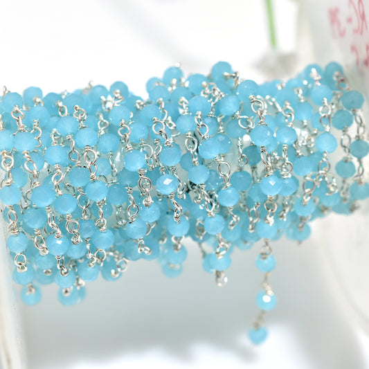 Blue Chalcedony Hydro Beads Rosary Chain - Silver Plated Gemstone Connectors for Wholesale Jewelry Design