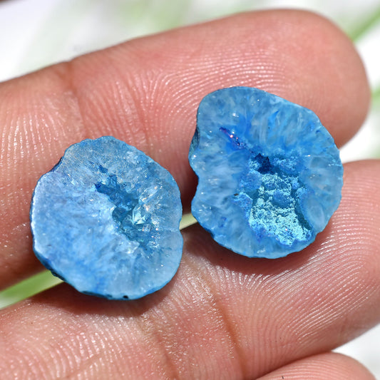 Blue Druzy Cabochon Pair, Dyed Geode for Earrings