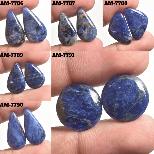 Blue Sodalite Earrings Pair - Fancy Shaped Sodalite Cabochons for Jewelry Making