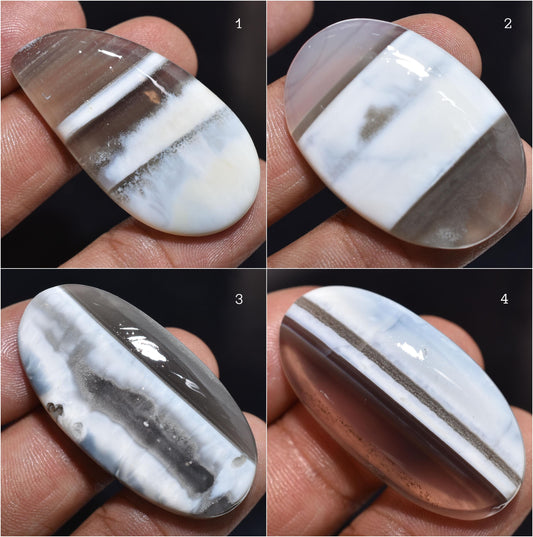 Blue Opal Agate Cabochon - Natural Grey Banded Agate Healing Crystal Stone