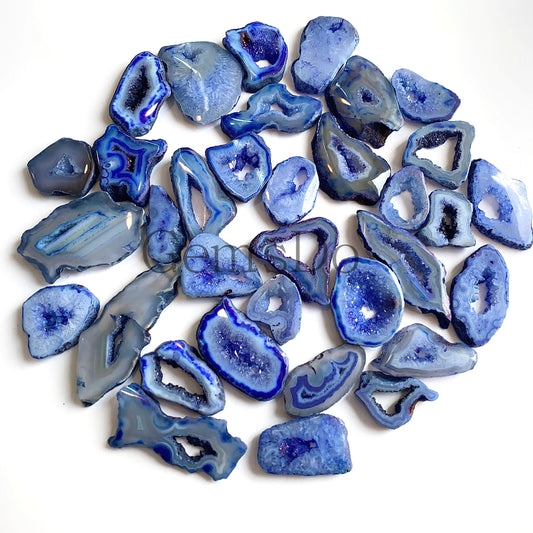 Blue Solar Quartz Gemstone Lot - Mixed Window Druzy Crystals & Slices for Jewelry Making