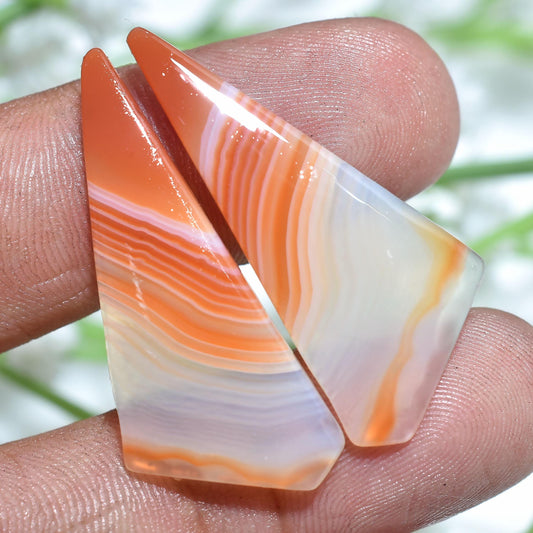 Butterfly Shaped Orange Banded Agate Pair – Smooth Polished Flat Back Gemstones