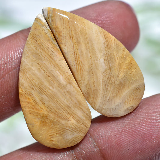 AAA Fossil Coral Matched Pair – Smooth Polished Jewelry Stones(10x30x3mm,/27ct)