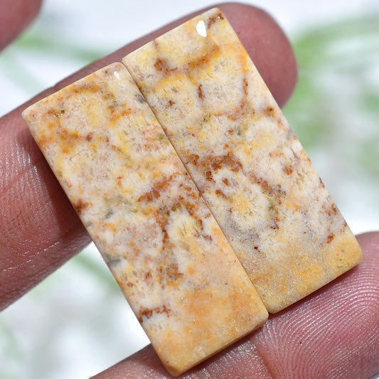 AAA Fossil Coral Matched Gemstone Pair – Smooth Polished Rectangle Jewelry Stones( 12x30x2mm,/33ct)